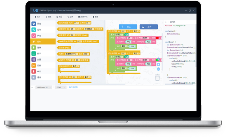 The Arduino has been warmly received worldwide by electronics lovers. The secret to its success is open source, affordability and ease of understanding. Even users less experienced in programming with Arduino can easily create exciting and interesting features such as controlling sensors, flashing lights and motors. UKit Explore is an open source tool that is fully compatible with Arduino.